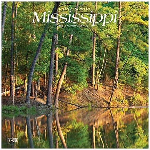 Mississippi Wild & Scenic | 2023 12 x 24 Inch Monthly Square Wall Calendar | BrownTrout | USA United States of America Southeast State Nature
